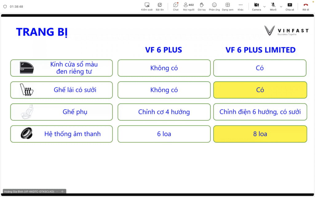 2. Bảng so sánh chi tiết VF6 Plus Việt Nam vs VF6 Plus US Limited
