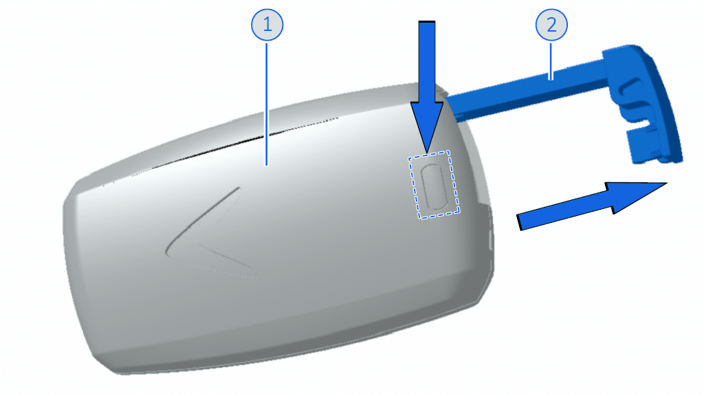 Khóa cơ được tích hợp bên trong chìa khóa điều khiển từ xa. Khi pin chìa hết hoặc tín hiệu RF bị nhiễu, có thể dùng khóa cơ để mở/khóa cửa thủ công.