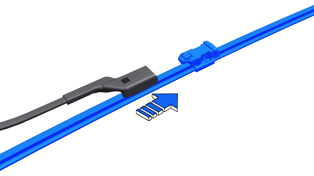 √ Trượt lưỡi gạt mới vào ngàm cho đến khi khớp chắc.