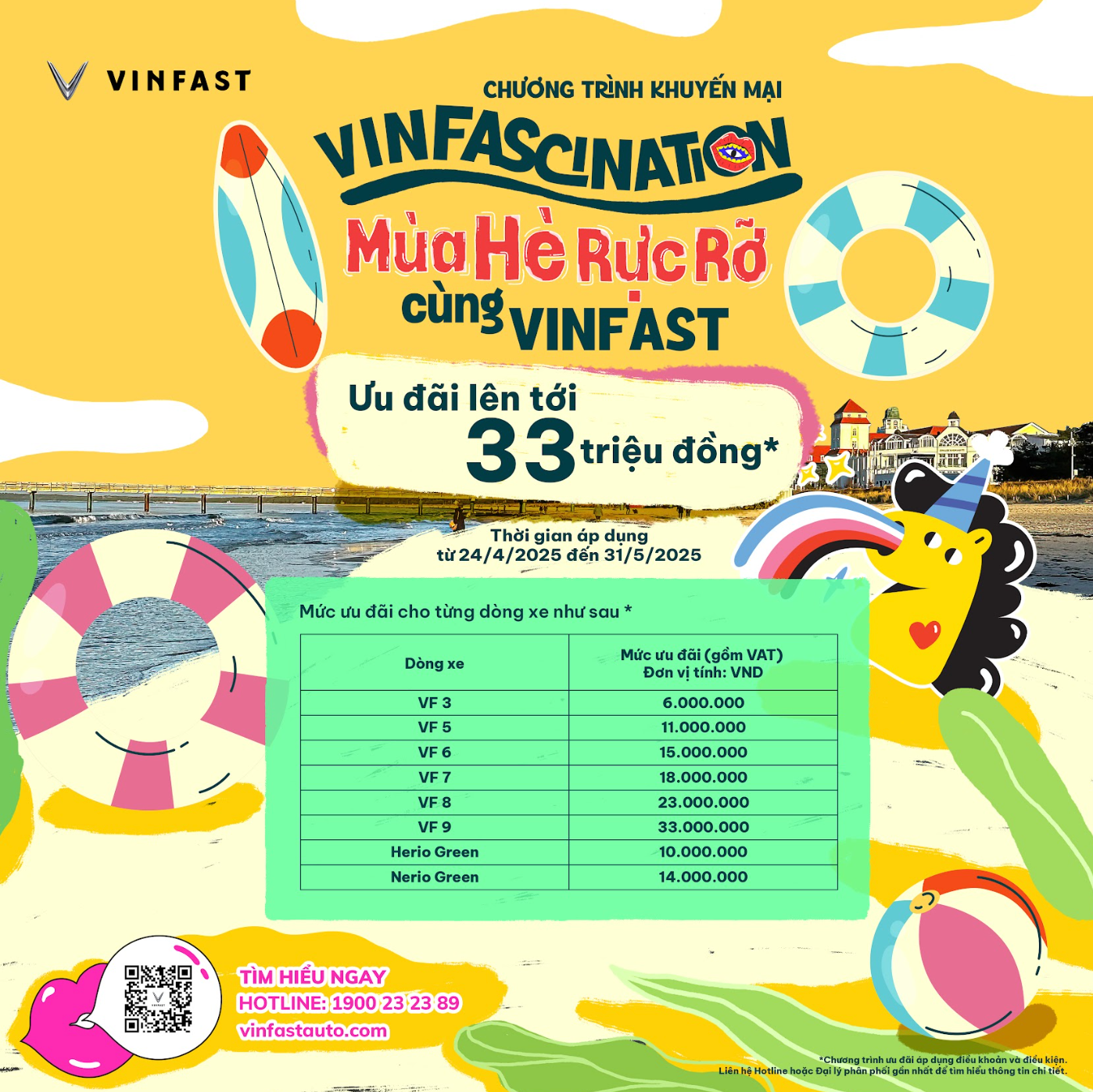 VinFast trân trọng giới thiệu chương trình khuyến mại đặc biệt “VINFASCINATION – Mùa Hè Rực Rỡ Cùng VinFast” dành tặng cho toàn thể Khách hàng luôn tin tưởng đồng hành cùng VinFast trong suốt thời gian qua.