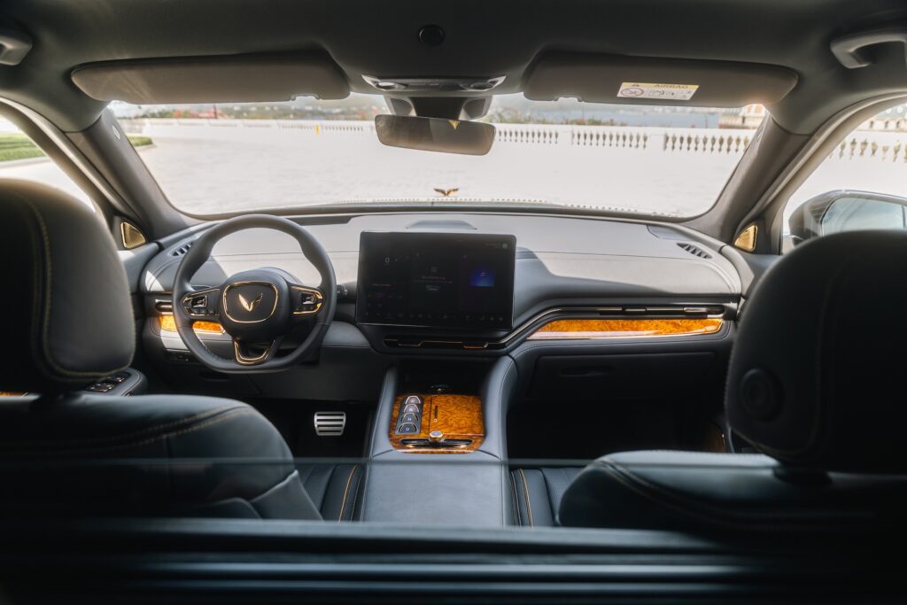 Nội thất được ốp, bọc và mạ bởi các loại vật liệu đặc biệt cao cấp như gỗ quý Golden Nanmu, da Nappa và vàng thật. Toàn bộ chi tiết mạ vàng trong và ngoài xe đều được làm hoàn toàn thủ công, với sự tài khéo, tinh tế và tỉ mỉ đến từng chi tiết.